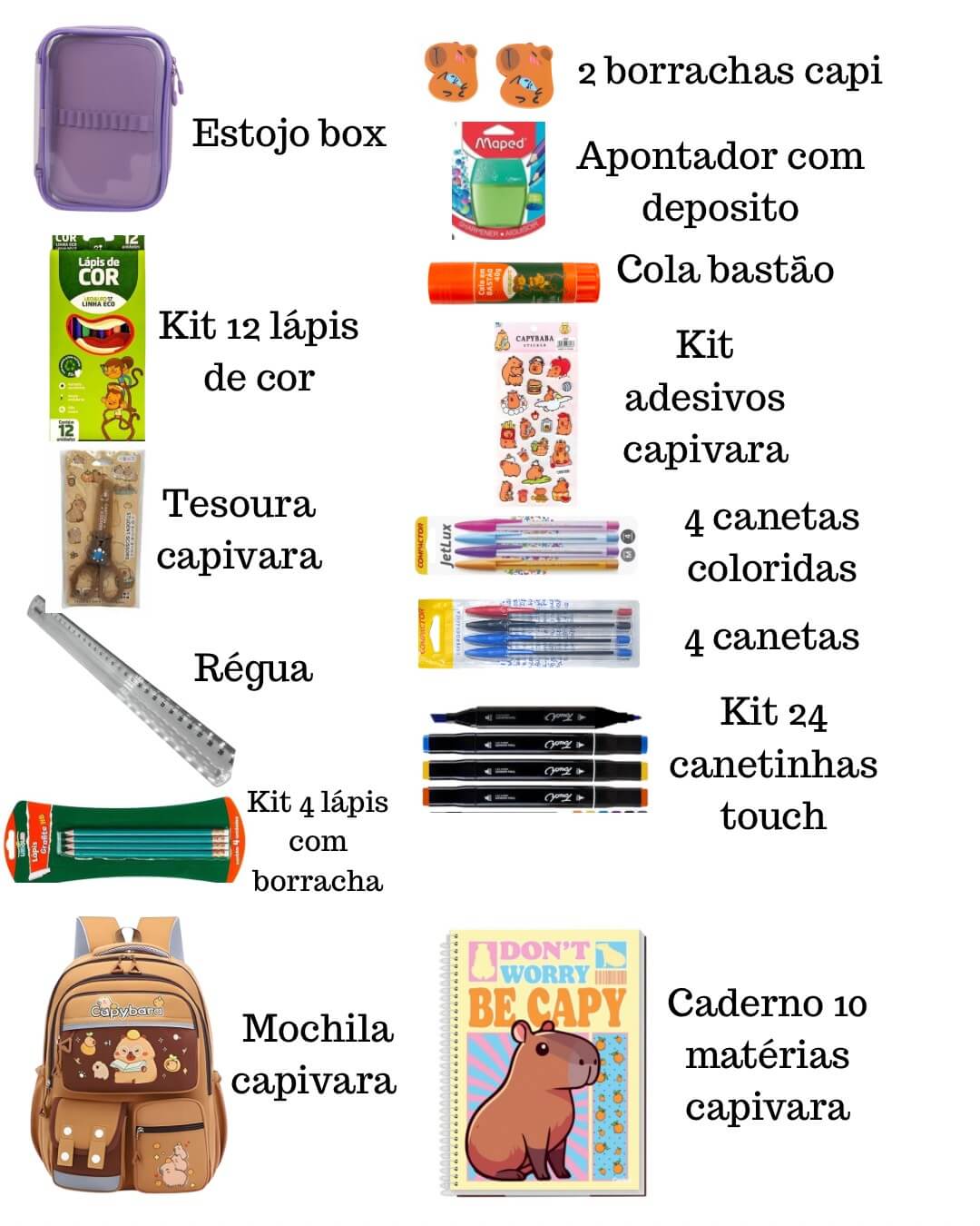 Kit Material Escolar Capivara Completo Personalizado Capybara